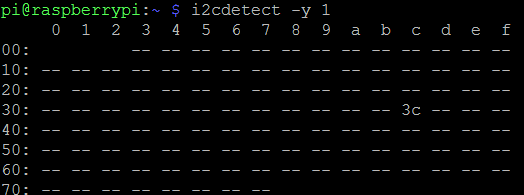 We will check that the wiring is correct and that the screen is detected on the I2C bus.