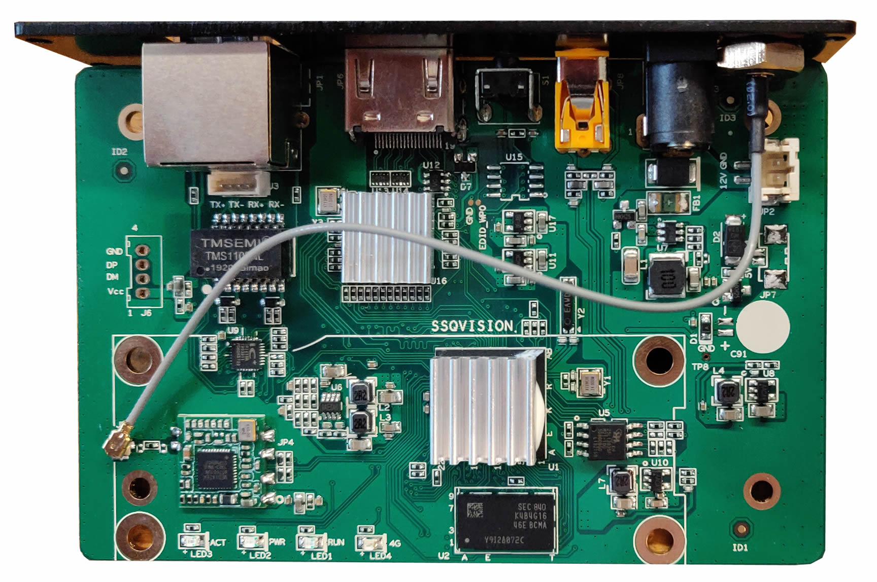 The box is to be considered as a video projector that would be connected to your computer. Except that in our case, the encoder does not project an image but encodes the video and audio to send it via network to a receiver/diffuser, receiver which in our case is the Adalm Pluto with the firmware PlutoDVB. The H.264/H.265 encoder has an HDMI connector through which we will send the video and audio. It is advisable to use the RJ45 cable to connect the box to the network rather to the wifi network, which is more prone to disturbance.